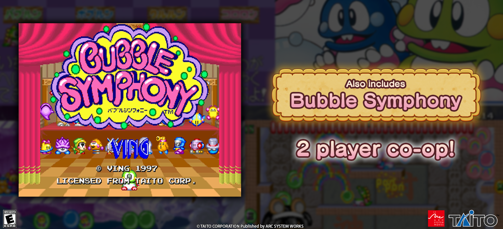BUBBLE BOBBLE Sugar Dungeons will include a bundled title Bubble Symphony, a port of the 1997 home console release which followed an initial introduction as an arcade game in 1994!
