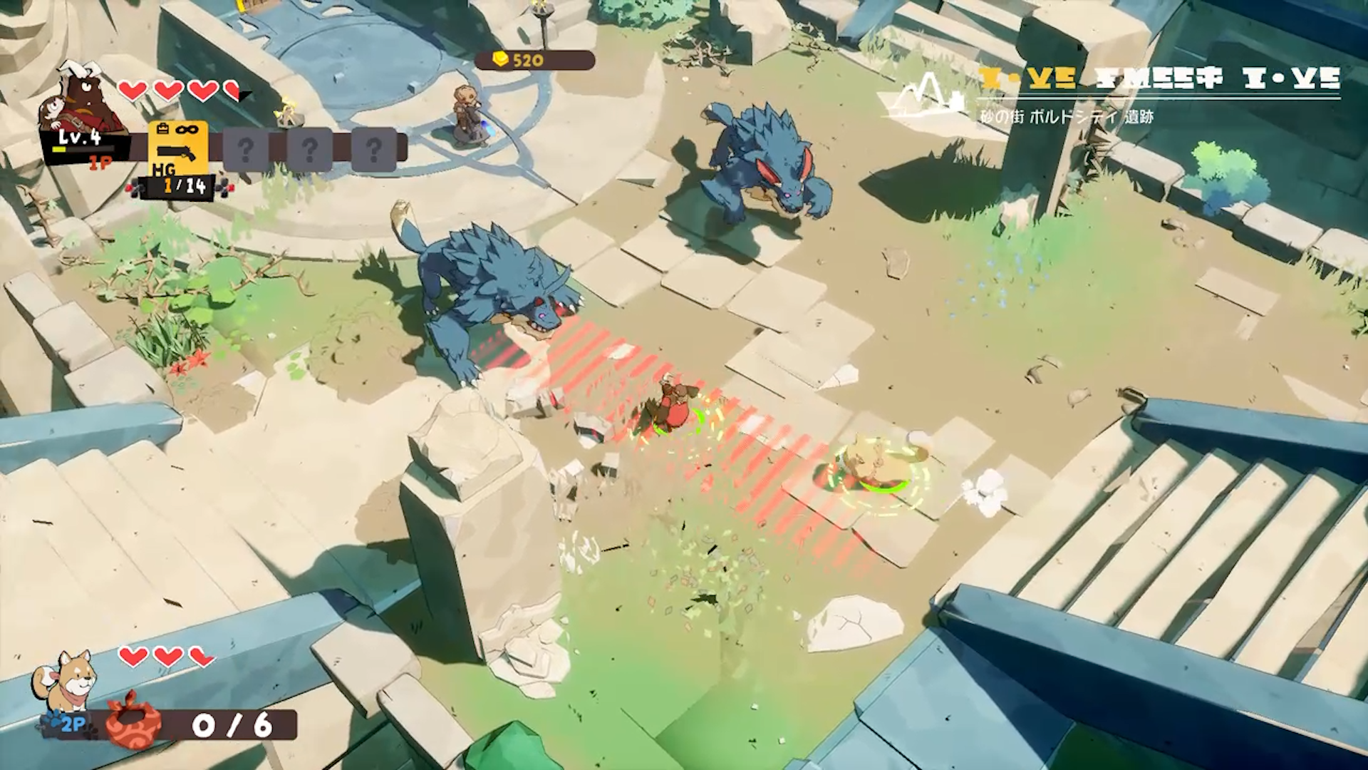 Experience a new type of action adventure, featuring a fusion between exploration within an expansive world and highly technical twin-stick shooting. At your home base, power up the demon king Damon and make purchases. During the exploration phase, defeat enemies to complete each area. The story progresses as you alternate between the two phases.